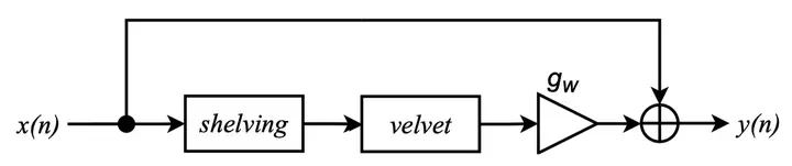 A filtering algorithm for generating subtle random variations in sampled sounds is proposed. Using only one recording for impact sound effects or drum machine sounds results in unrealistic repetitiveness during consecutive playback. This paper studies spectral variations in repeated knocking sounds and in three drum sounds: a hihat, a snare, and a tomtom. The proposed method uses a short pseudo-random velvet-noise filter and a low-shelf filter to produce timbral variations targeted at appropriate spectral regions, yielding potentially an endless number of new realistic versions of a single percussive sampled sound. The realism of the resulting processed sounds is studied in a listening test. The results show that the sound quality obtained with the proposed algorithm is at least as good as that of a previous method while using 77% fewer computational operations. The algorithm is widely applicable to computer-generated music and game audio.