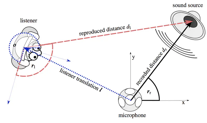 First-order Ambisonics (FOA) recordings can be processed and reproduced over headphones. They can be rotated to account for the listener’s head orientation. However, virtual reality (VR) systems allow the listener to move in six-degrees-of-freedom (6DoF), i.e., three rotational plus three transitional degrees of freedom. Here, the apparent angles and distances of the sound sources depend on the listener’s position. We propose a technique to facilitate 6DoF. In particular, a FOA recording is described using a parametric model, which is modified based on the listener’s position and information about the distances to the sources. We evaluate our method by a listening test, comparing different binaural renderings of a synthetic sound scene in which the listener can move freely.